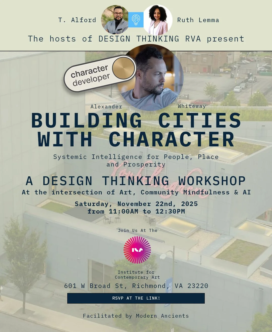 Character Developer by Modern Ancients is a civic-intelligence design platform powered by VoiceBuild, letting community members, planners, developers, and city innovators speak insights directly into an AI that instantly turns them into maps, scorecards, prototypes, and shared tools… a way for anyone to translate lived experience into actionable design intelligence that cities can actually use.
